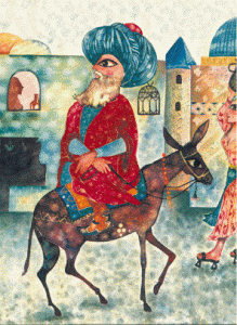 Herkesin bildiği bir fıkradır bu, üstelik de sıkça kullanılagelen bir kalıp haline de gelmiştir… Aslında ne el yazmalarında ne de İlhan Başgöz ve Pertev Naili Boratavın Nasrettin Hoca’ya dair aktardıklarında böyle bir anlatım ve yaklaşım yoktur. Hocayı biliriz, kimi zaman hoca olarak çıkar karşımıza kimi zaman kadı, kimi zaman da kadı karşısında bir sanık… Adaletle de arası iyi değildir. zaten halkın anlatısında ortaya çıkan bu kıvrak akıllı kahraman biraz da yoksul halkın karşılaştığı haksızlıklarla başa çıkma yöntemlerinden biridir. rüşvet yiyen kadılardan yaka silken halk fıkrasında da rüşvet yemeyi seven Nasrettin Hocaya güler.