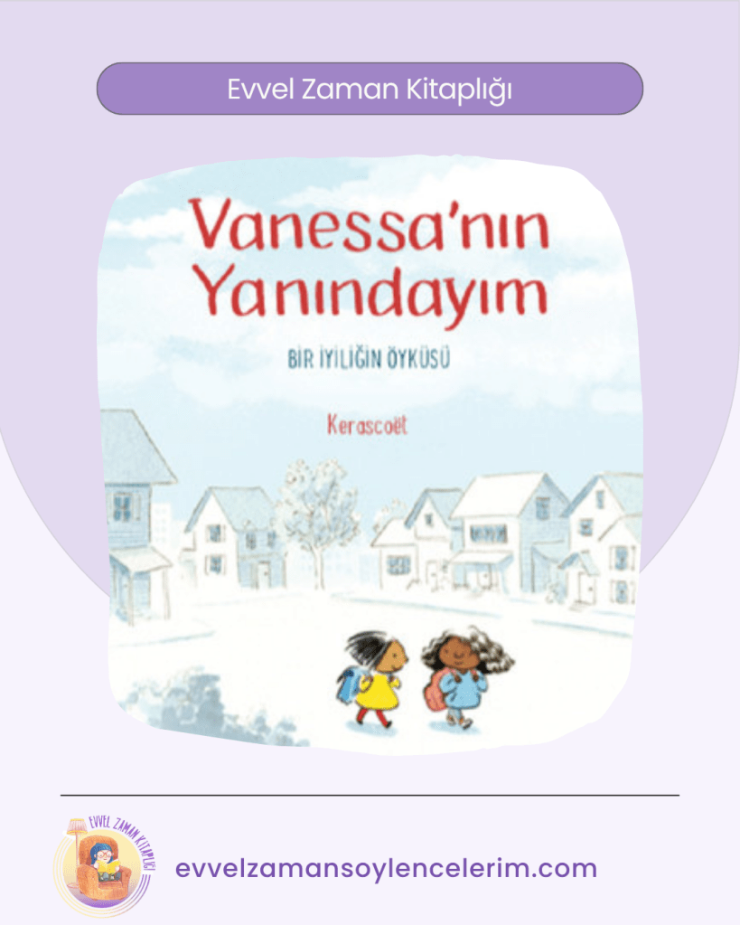 Vanessa’nın Yanındayım dışlanmaya karşı sessiz kalmamayı kelimeler olmadan anlatan bir kitap. Dışlama ve zorbalık; bazen söz ve tavırla, bazen sessiz bir tanıklıkla meydana gelen yaygın sorunlar. Çocuklar üzerinde olumsuz etkileri olan ve çok fazla boyutu olan bu davranışların elbette incelikle ele alınması gerekiyor.